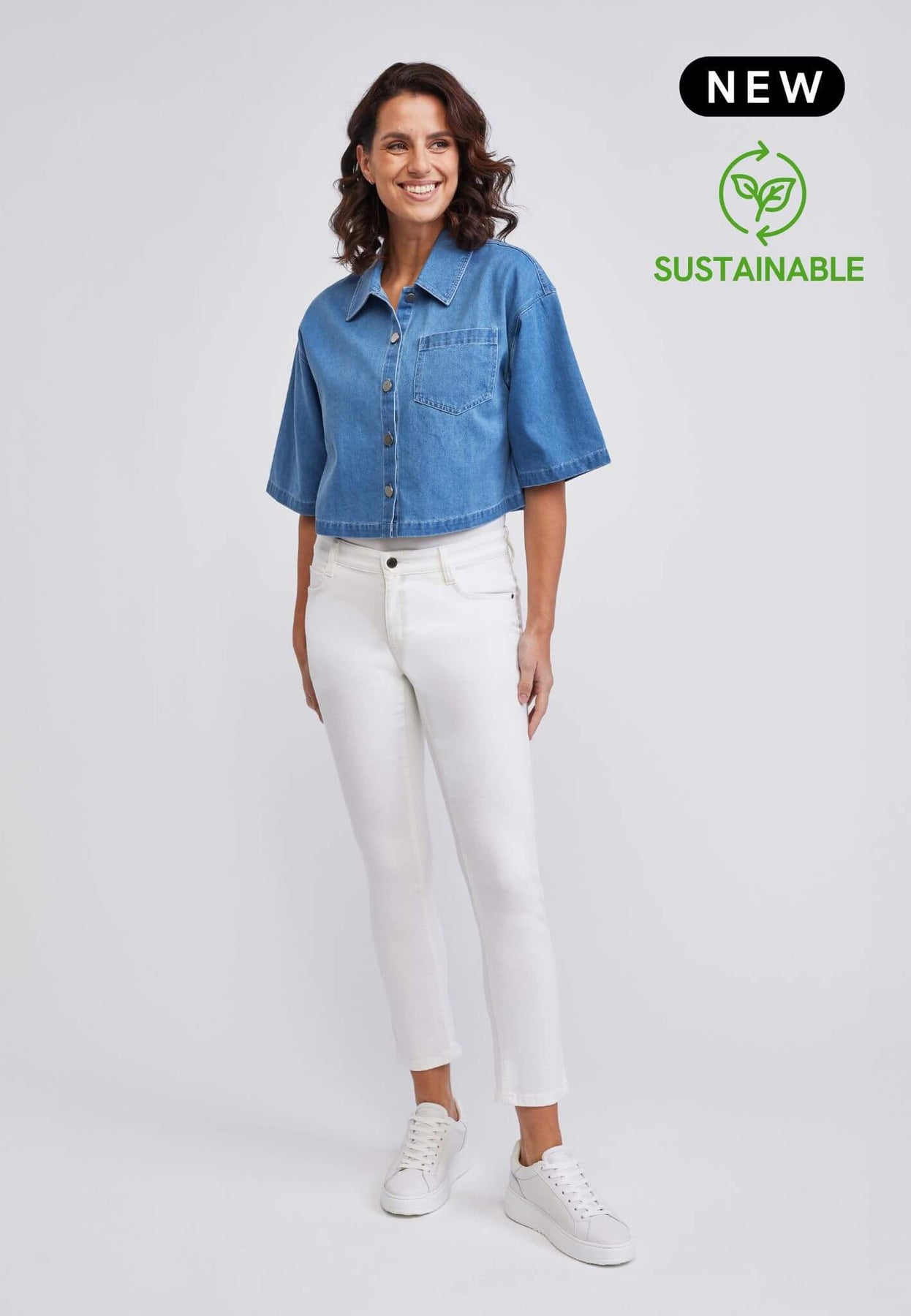 Bawełna w tych cudownych dżinsach pochodzi w 100% z recyklingu, co sprawia, że uprawa nowej bawełny i zużycie wody są zbędne. Nasze przyjazne dla środowiska dżinsy są w całości produkowane w Europie, wzmacniając lokalne gospodarki i optymalizując ślad węglowy.
