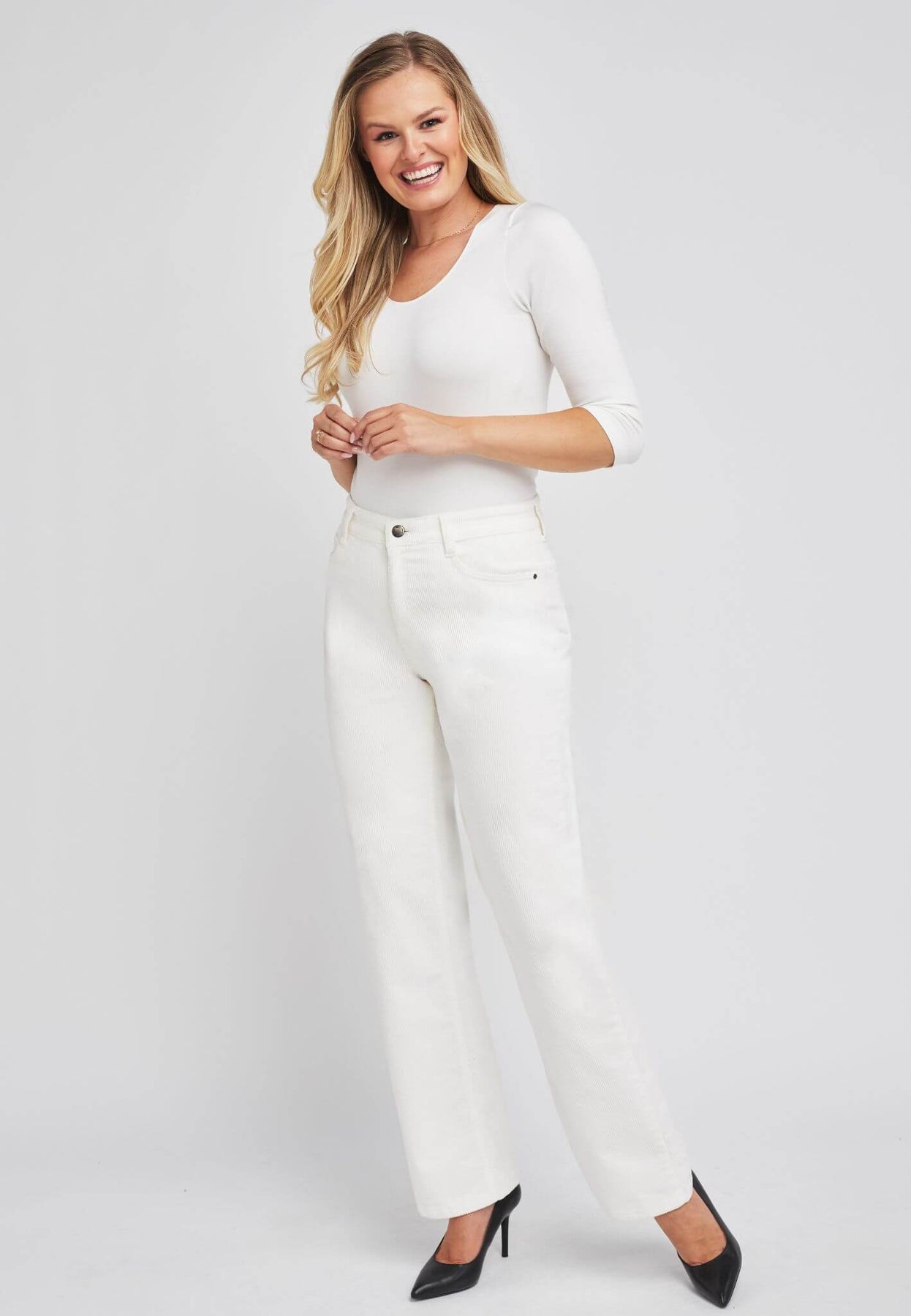 Die wonderjeans Loose Fit in edlem Off White Cord ist ein stilvoller Allrounder, der Lässigkeit und Eleganz perfekt verbindet. Der fein strukturierte Cordstoff in hellem Off White verleiht jedem Outfit eine moderne, frische Note und passt sich mühelos unterschiedlichsten Looks an – von entspannt bis chic.Der lockere Schnitt sorgt für eine bequeme Passform, während der Stretch-Anteil Bewegungsfreiheit und angenehmen Tragekomfort garantiert. Eine Jeans, die sowohl im Alltag als auch zu besonderen Anlässen überzeugt und Cord in einer besonders zeitgemäßen Variante zeigt.